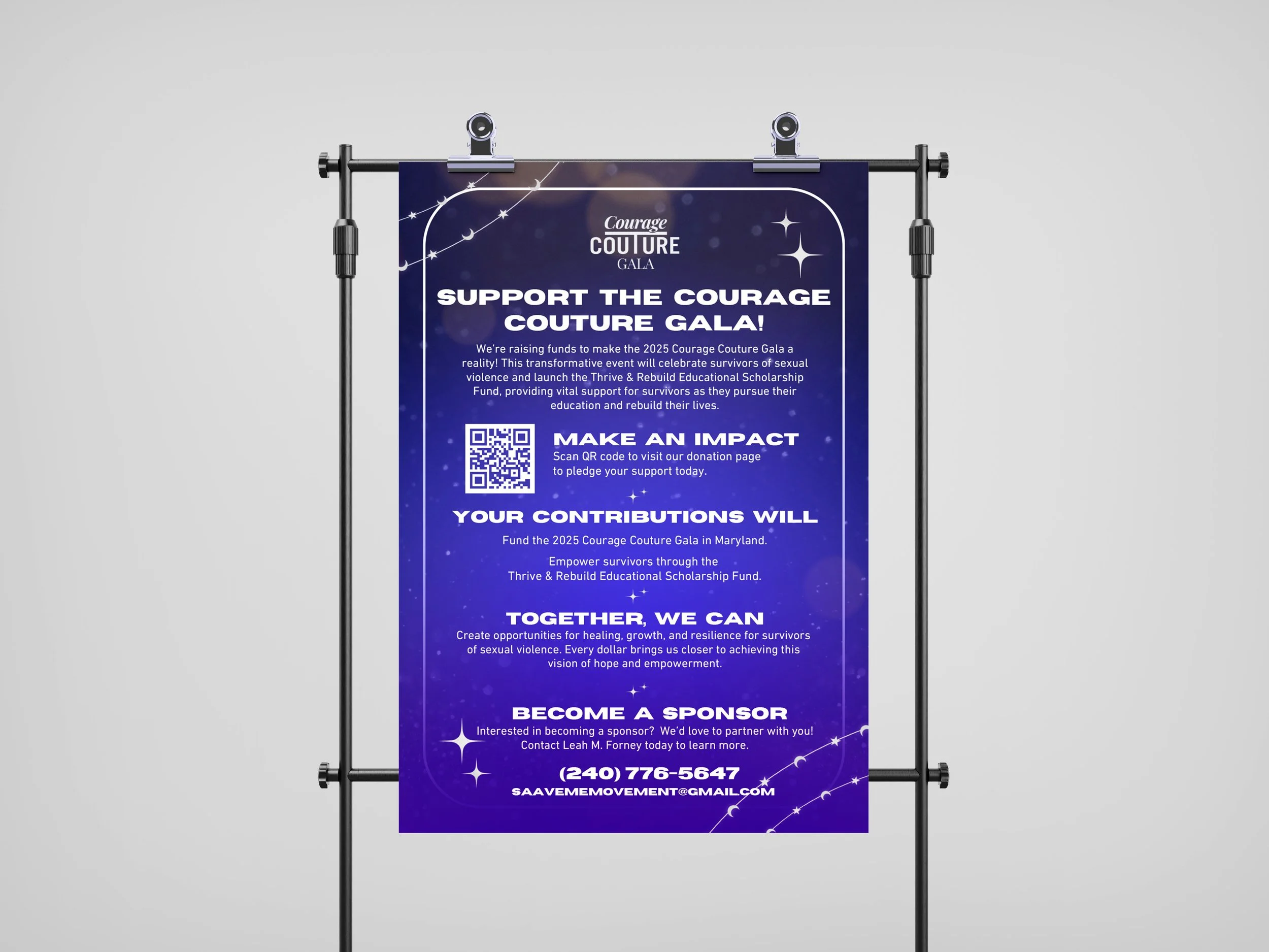 Every year, I dedicate my design expertise to a cause close to my heart. This year, I’m honored to collaborate with the Courage Couture Gala, a vital fundraising event hosted by the Sexual Assault Advocacy for Victims Everywhere (SAAVE Me) organization.